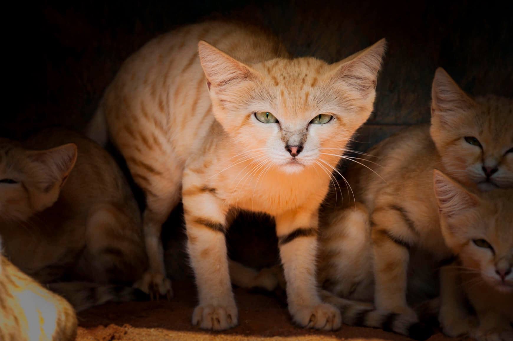 As its name suggests, the sand cat is an exclusive breed of cat that lives mostly in deserts. However, it is well suited to living in almost any weather conditions, including extremely cold ones. It’s fur often matches the colours of desert sand, a very light sandy brown or pale white. They’re also known for their intense yellow-greenish eyes.