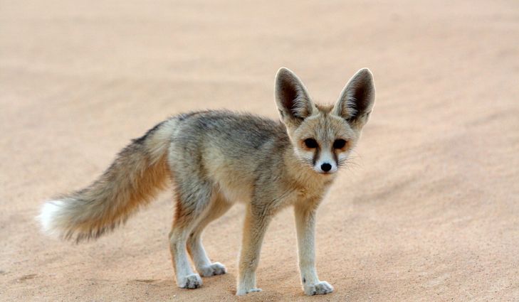 Known as the sand fox, the Rüppell’s Fox is a type of fox well adjusted to desert-like, sandy conditions. It has a sandy and greyish fur thick that mimics and makes it well adjusted to a sandy habitat. It is well recognised for its black muzzle, lengthy whiskers, and elongated tail. In contrast to red foxes, it has long ears and a paler coat.